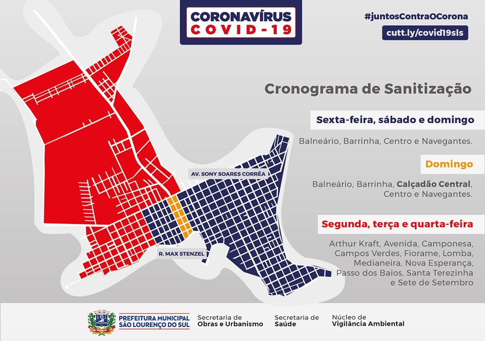 Após a conclusão destas áreas da cidade, a sanitização seguirá nos demais bairros a partir de segunda-feira (24), com avisos prévios. Pede-se que as pessoas também evitem deixar carros estacionados nas ruas, para que o trabalho seja melhor realizado.