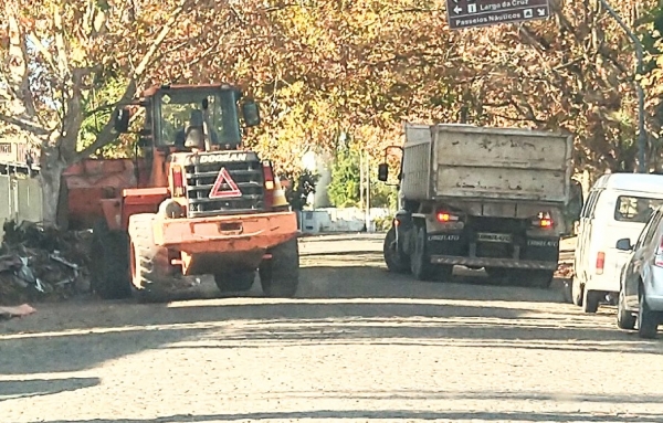 No feriado de Corpus Christi as máquinas e caminhões da Secretaria de Obras trabalham para normalizar o recolhimento de entulho nos bairros da cidade.