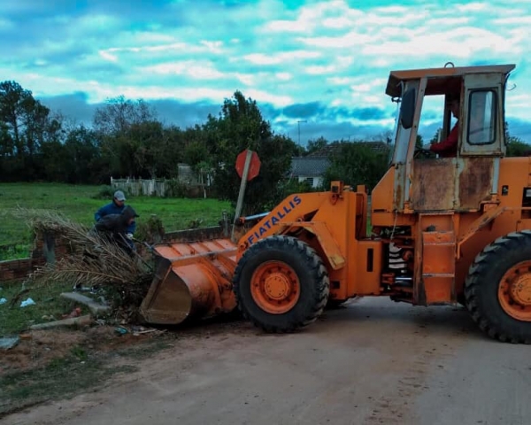 Além da força tarefa nesses bairros, que acontece inclusive durante sábado e domingo, seguem sendo recolhidos os entulhos na Lomba.