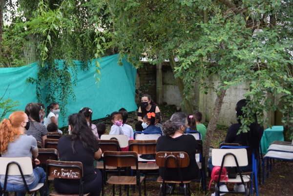- 14h30: Contação de história com o Grupo de Teatro MISENSCENE – EMEF Maximiliano Strauss