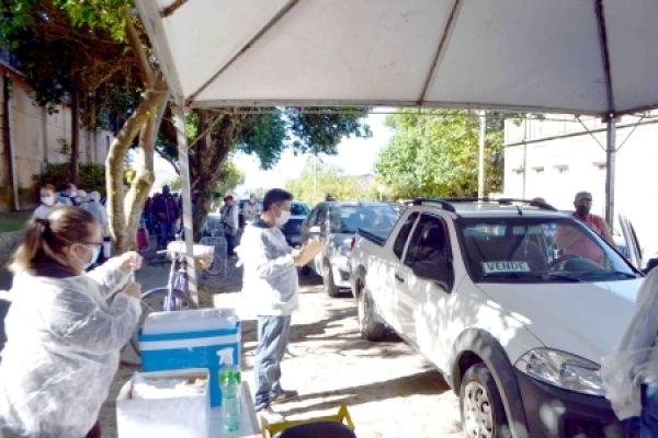 No drive-thru de vacinação e no saguão da Secretaria Municipal de Saúde (R. Senador Pinheiro Machado, 100).