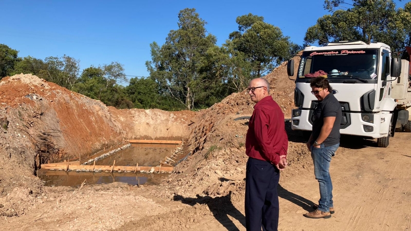 Iniciaram na manhã desta terça-feira (29) as obras de concretagem do bueiro de galerias que substituirá a antiga 'Ponte dos Härter'. A ponte, localizada na Estrada Camponesa, havia ruído há vários anos atrás. A concretagem da base é o primeiro passo da obra que substituirá a ponte em madeira que existe atualmente no local. Estiveram acompanhando o início da obra o vice-prefeito, Cléo Uarthe, o secretário de Desenvolvimento Rural, Moisés Araújo, e o engenheiro da Secretaria de Planejamento e Meio Ambiente, Fabrício Gehling. Fonte: Decom