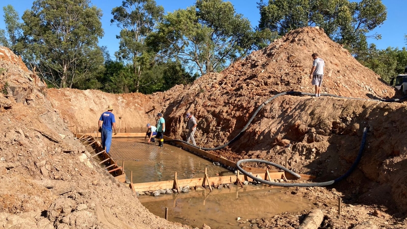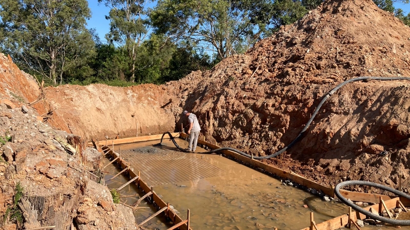 A concretagem da base é o primeiro passo da obra que substituirá a ponte em madeira que existe atualmente no local.