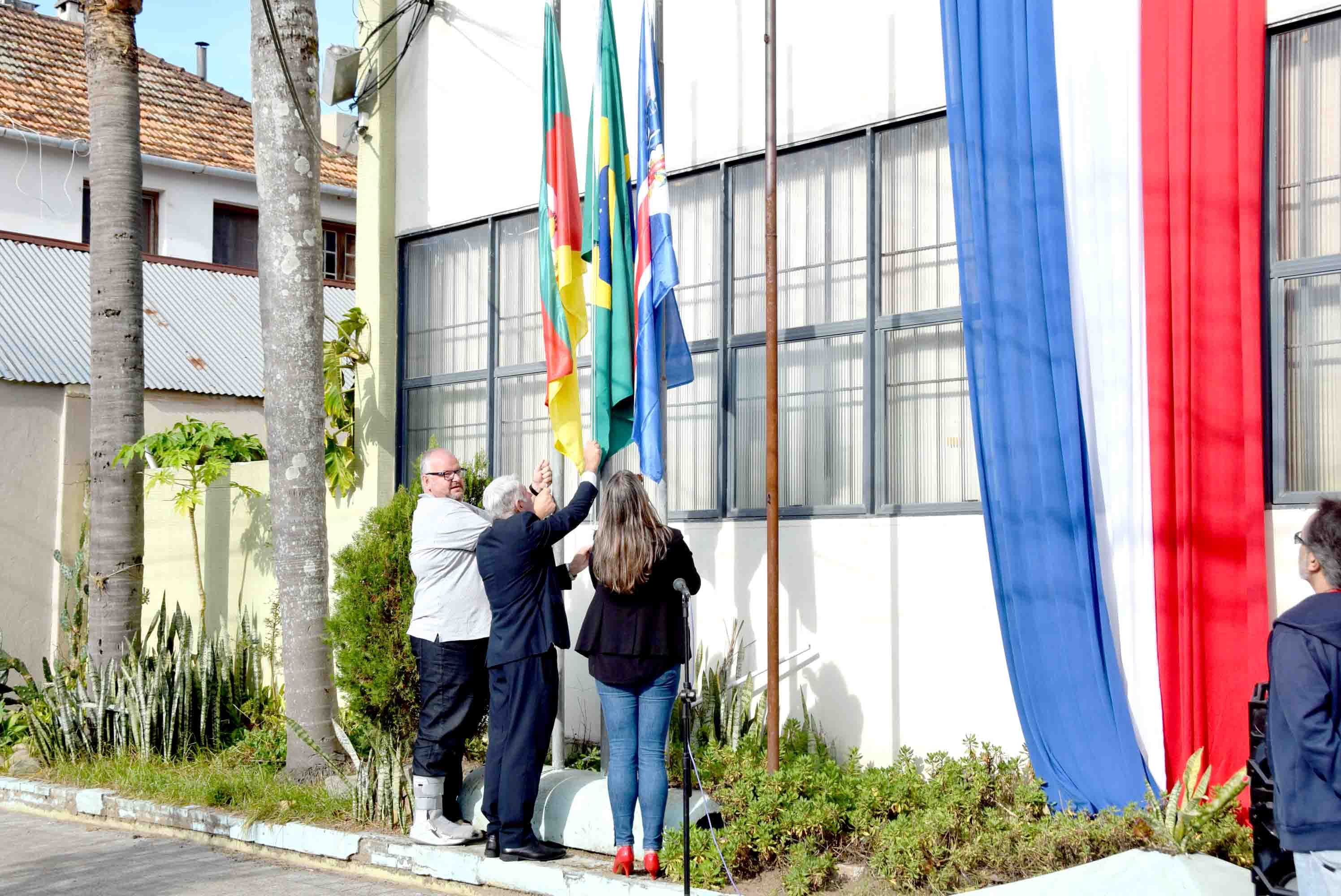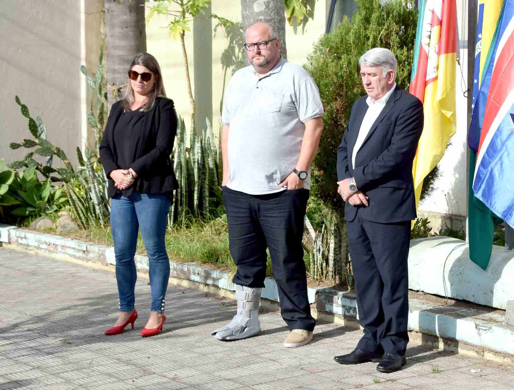 Na manhã desta segunda-feira (18) foi realizada a abertura da Semana de Aniversário do Município no prédio central da Prefeitura Municipal. Durante a solenidade foram entoados os hinos do Brasil, Rio Grande do Sul e do Município de São Lourenço do Sul e, logo após, hasteadas as bandeiras pelo Prefeito Rudinei Harter, pelo Secretario de Educação, Fabiano Bosenbecker e pela Coordenadora de Cultura, Fabiana Duarte.