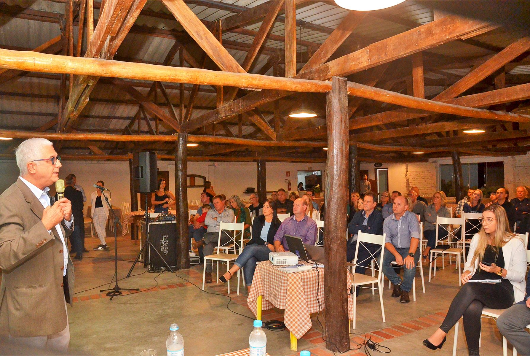 Na noite de quarta-feira (20) aconteceu na Fazenda do Sobrado, o seminário “O Impacto do Agronegócio na Sociedade”, promovido pela Secretaria de Turismo, Indústria e Comércio (SMTIC) através do Escritório de Desenvolvimento em parceria com o Sindicato Rural. Na ocasião foram abordadas pelo Advogado e consultor jurídico da Farsul, Frederico Buss, questões relativas aos contratos agrários, de arrendamento e parceria rural, de crédito rural e financiamento privado, gestão de riscos cada vez mais necessária ao empresário rural, tais como seguro rural, agrícola e pecuário. Cautelas, que devem ser observadas na comercialização da produção rural, na Declaração do Imposto Territorial Rural e também, como não poderia deixar de ser, questões relativas que devem ser observadas relativamente à legislação ambiental. Um bom número de pessoas estiveram presentes prestigiando o evento. Fotos Roni Coelho