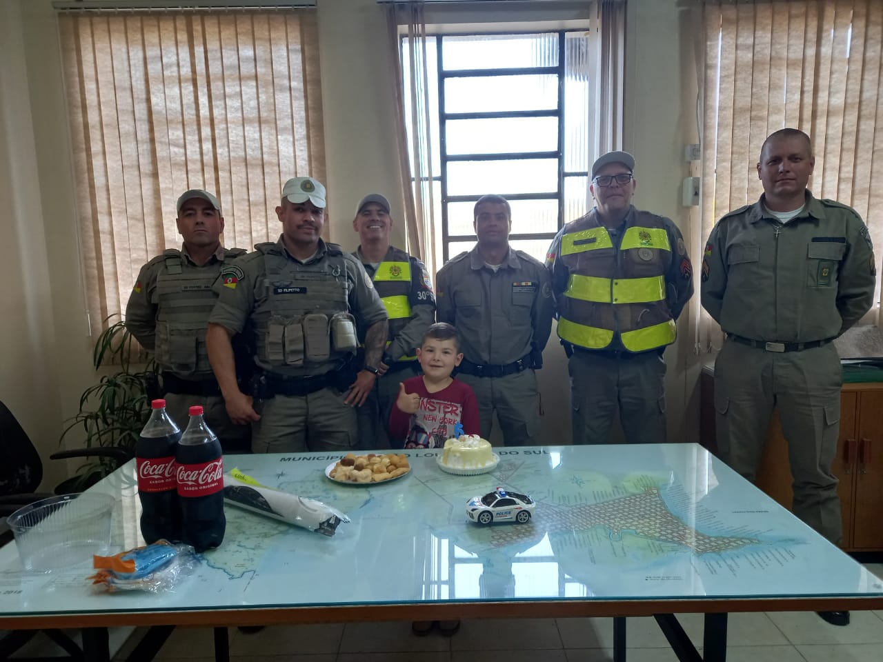 O garoto Ezequiel Konsgen Orestes, filho de Osiel e Letícia Orestes, comemorou seu aniversário visitando nesta sexta-feira a Corporação da Brigada Militar de São Lourenço do Sul. Seus pais combinaram a surpresa com a Brigada Militar de Levar Ezequiel, que é fascinado pela Polícia, o qual foi muito bem recebido pelos policiais realizando o sonho do Menino. Ezequiel comemorou seu aniversário de 5 anos em uma tarde inesquecível.