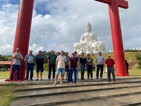 Conselheiros de Administração e Fiscais da Cooperativa Sicredi Interestados RS/ES estão no estado do Espírito Santos para participar da inauguração da nova agência em Linhares. A comitiva saiu ontem do Rio Grande do Sul e ficará até domingo, quando terá a oportunidade de conhecer a nova área de ação da Cooperativa. Na foto os conselheiros estão na cidade de Ibiraçu, visitando o Grande Buda, com mais de 35 metros de altura.O evento de inauguração ocorre hoje, dia 24 de junho, as 19h e terá transmissão ao vivo pelo perfil da Cooperativa no Youtube, através do link https://www.youtube.com/watch?v=0slgUSVNOaw.