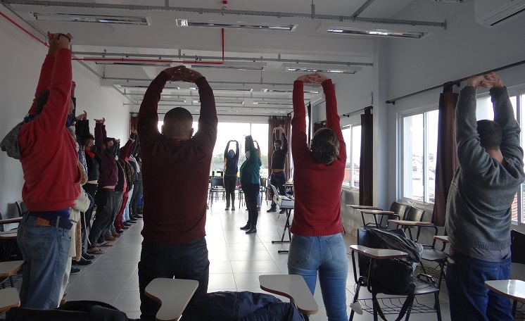 Na última sexta-feira, 8, cerca de vinte pessoas, entre estudantes, servidores e pessoas da comunidade externa à FURG São Lourenço do Sul (FURG-SLS) se reuniram para o primeiro dos quatro encontros de práticas musicais que estão previstos entre os meses de julho e agosto no Campus. Por aproximadamente duas horas, a regente Silvia Zanatta ensinou os presentes sobre técnicas de respiração e de uso da voz.