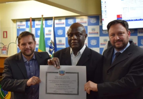 Com o Projeto de Lei de autoria dos vereadores Abel Bueno (MDB) e Renan Hartwig (Progressista) foi entregue na noite de segunda-feira (25) na Câmara Municipal, o título de Cidadão Sul-Lourenciano ao Comissário Marcelo Rosa, da Polícia Civil de São Lourenço do Su. O jornal O LOURENCIANO parabeniza o ilustre policial pelo merecido reconhecimento. Parabéns! Foto Rede social Renan Hartwig