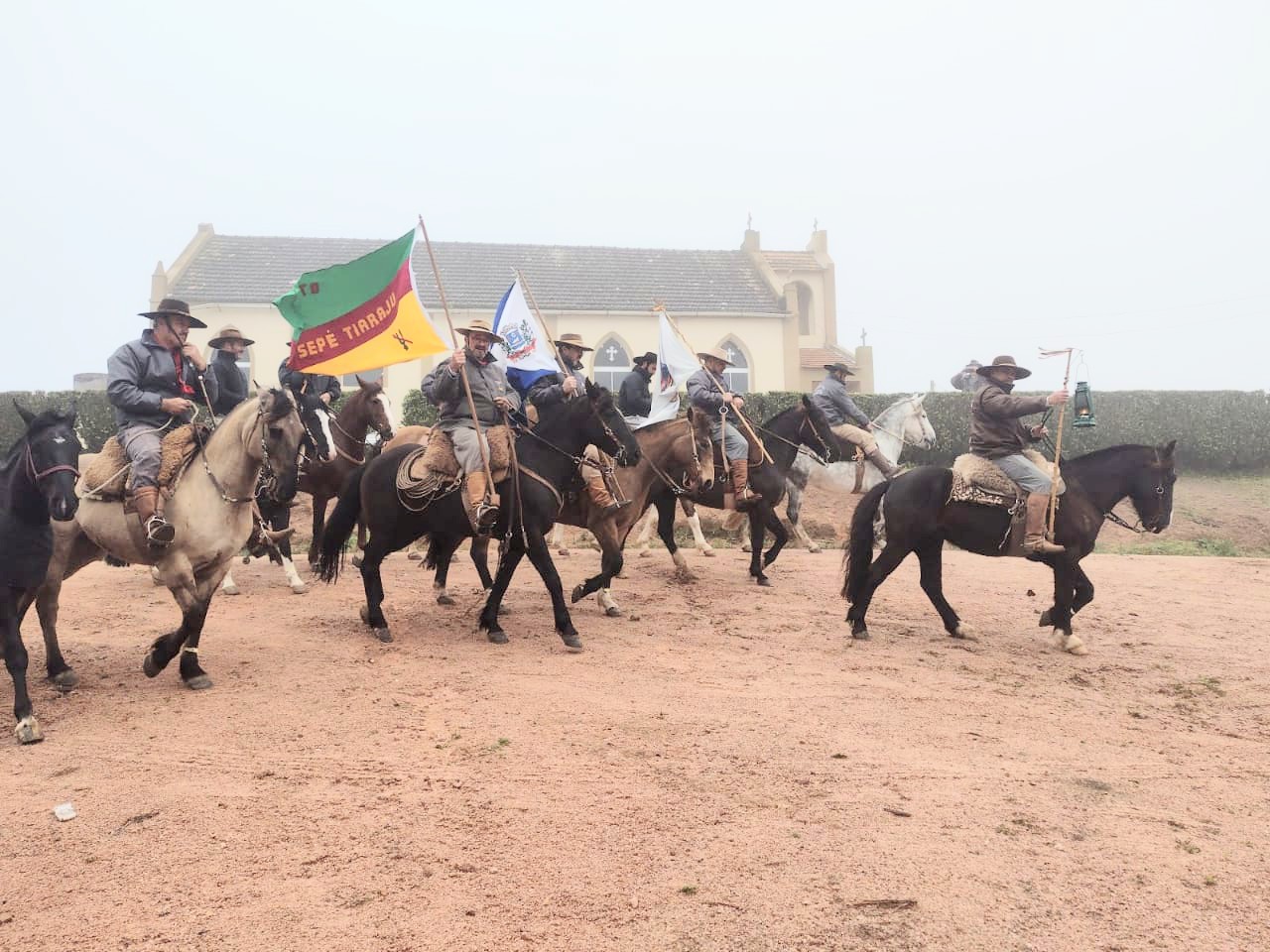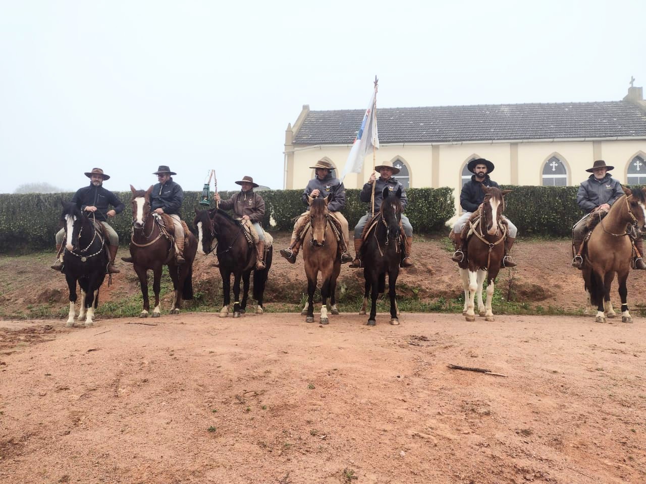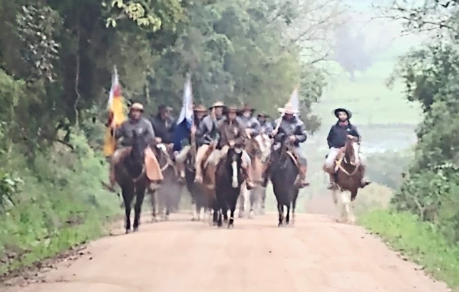 Na manhã desta quarta-feira (17) a Chama Crioula será conduzida até a localidade da Reserva, que ontem estava em Bom Jesus. As fotos enviadas pelos Cavaleiros do Sepé, por Ivano Spiering.