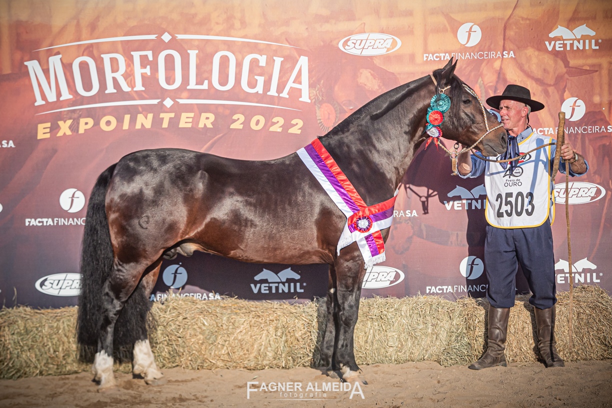 O cavalo Mais Um Magistrado, da Cabanha MAIS UM, de São Lourenço do SUL, do criador Claudio Omar de Almeida, que tem como cabanheiro Milton Castro, foi premiado: Reservado Grande Campeão e Campeão Cavalo Adulto na morfologia do Freio de Ouro na Expointer 2022, realizada no último domingo em Esteio. Fotos Fagner Almeida