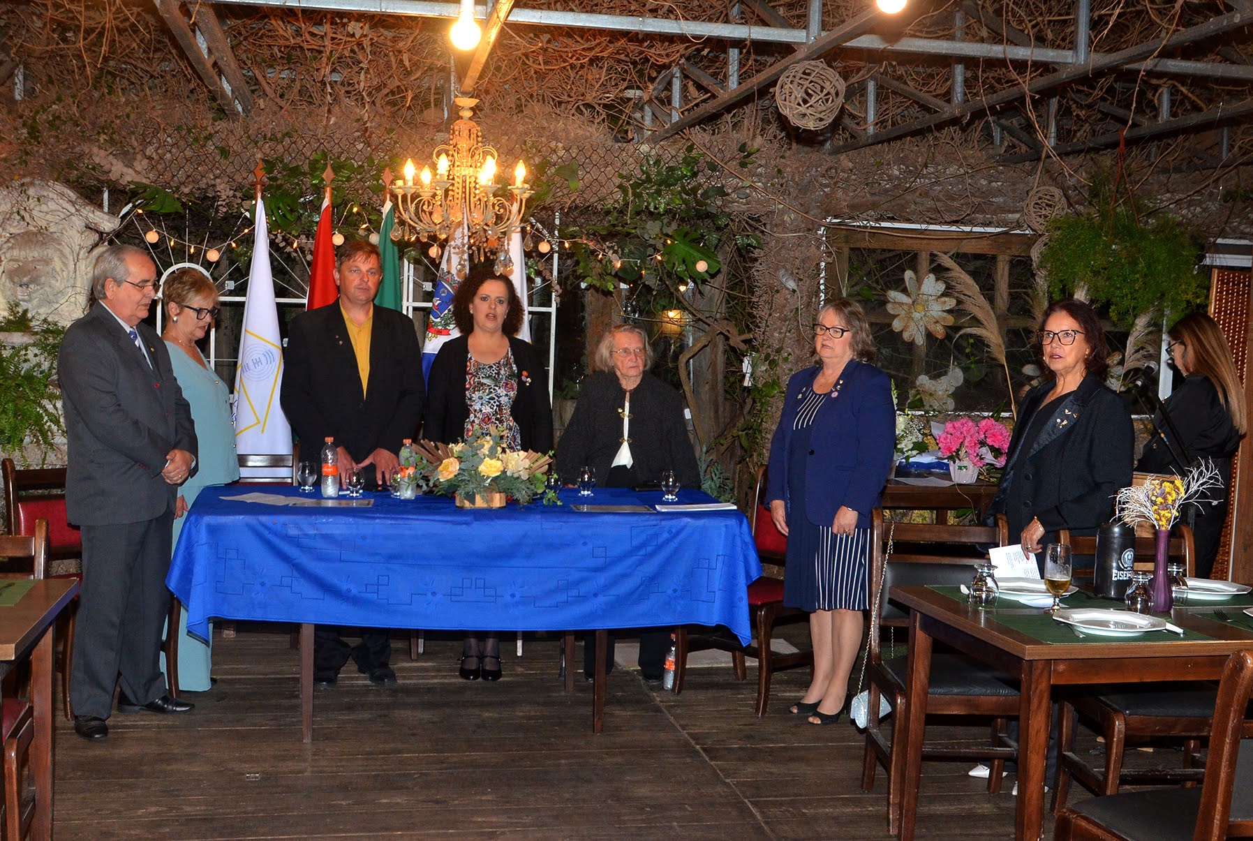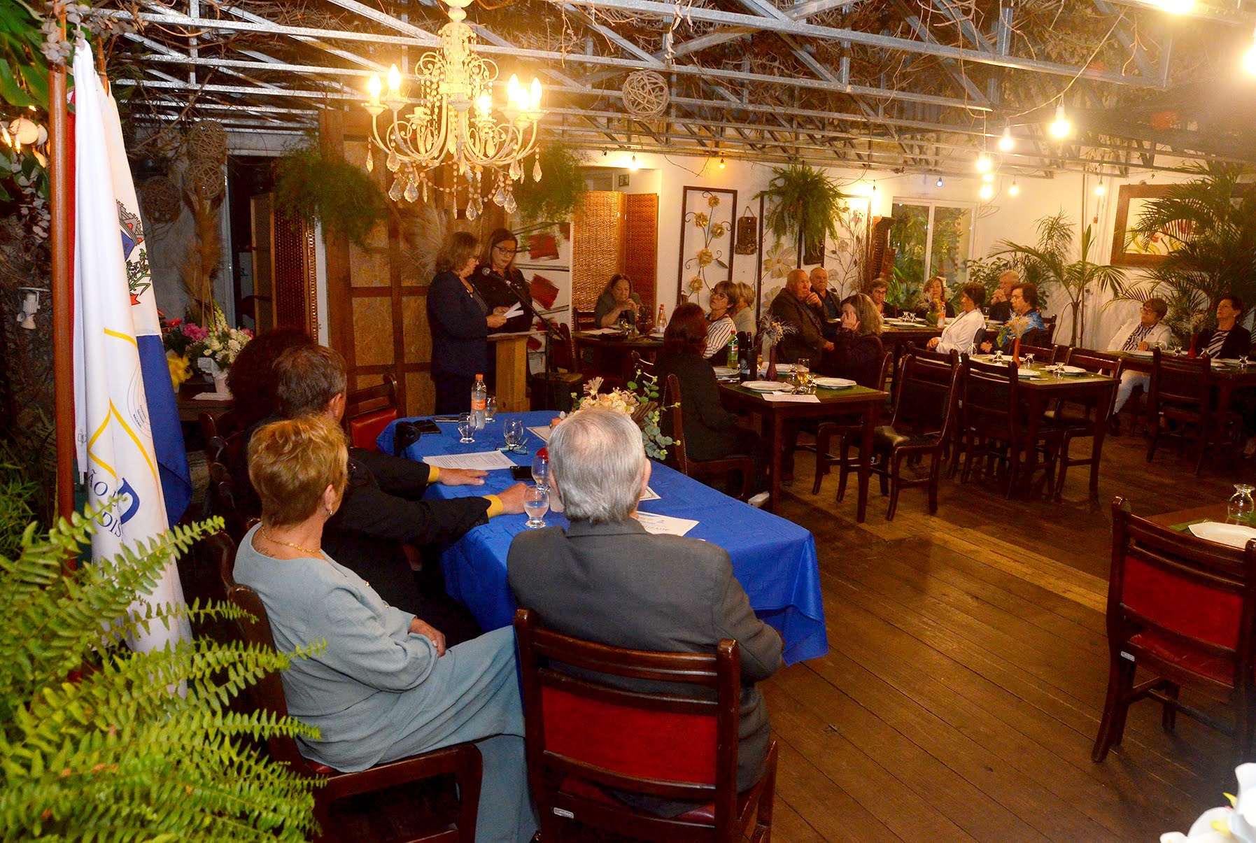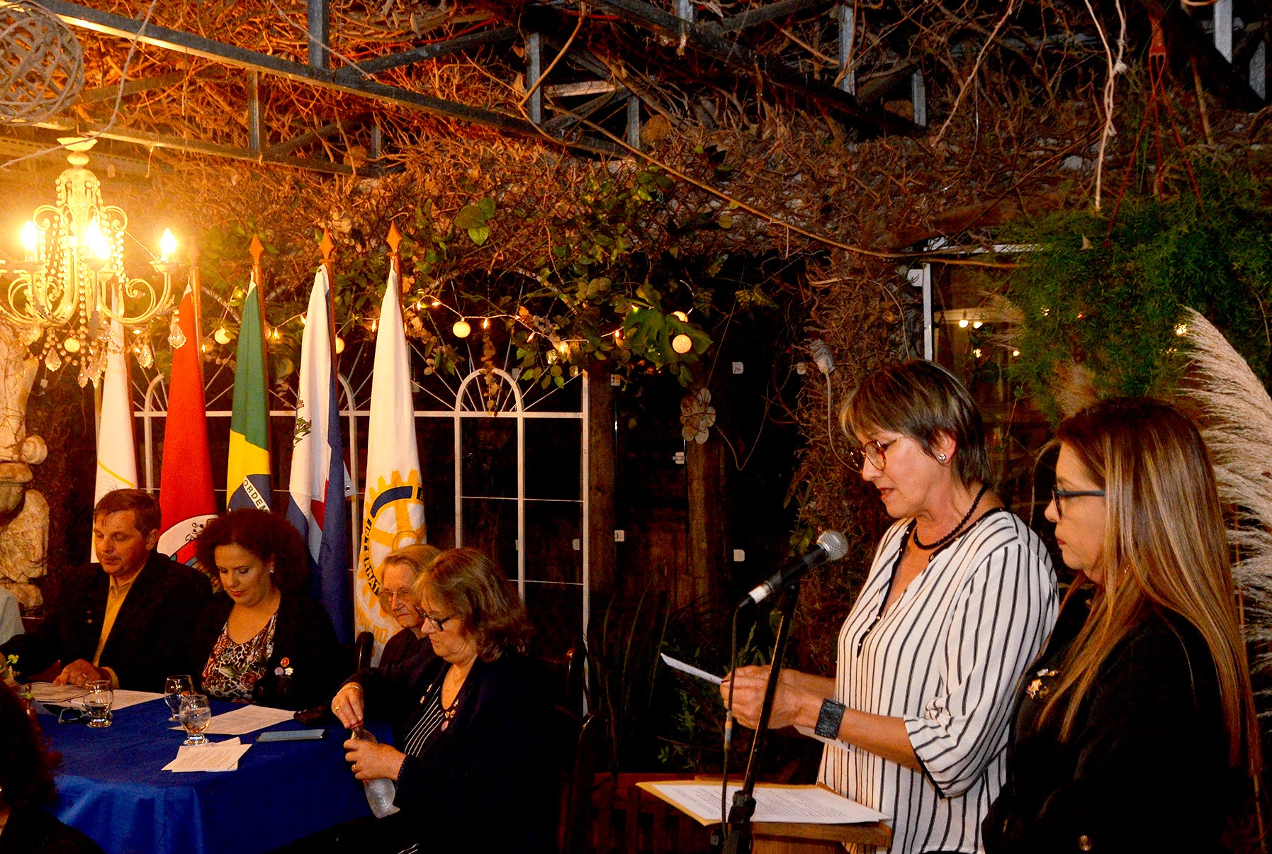A presidente Valéria Leitzke, juntamente com as companheiras recepcionaram os convidados: Presidente do Rotary Club Pandiá Cardoso e esposa, e demais companheiros do clube, representantes de Entidades de nossa comunidade.
