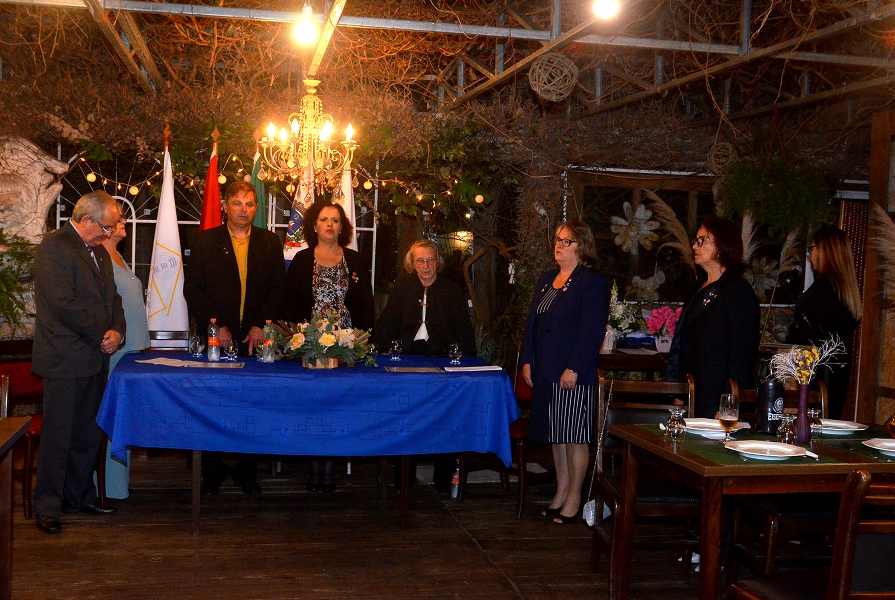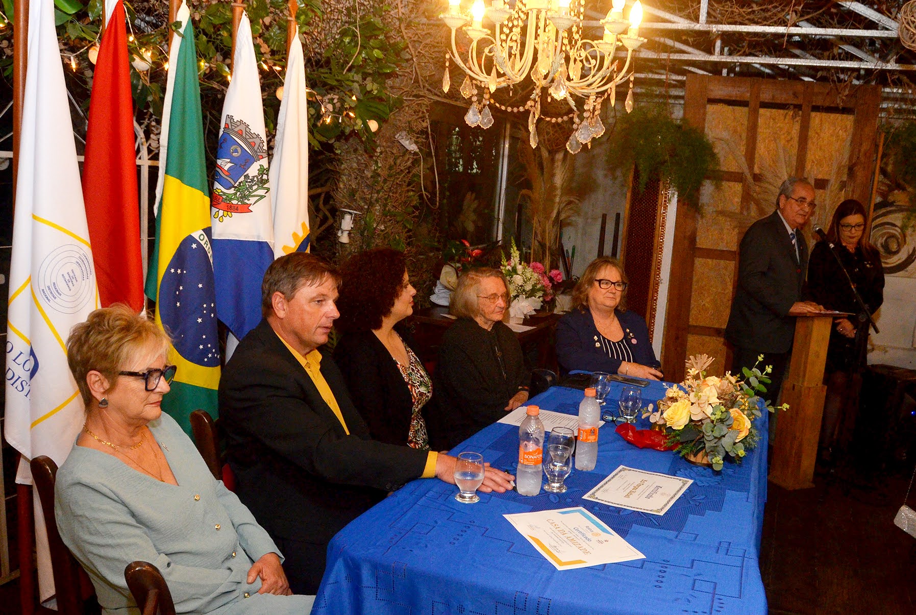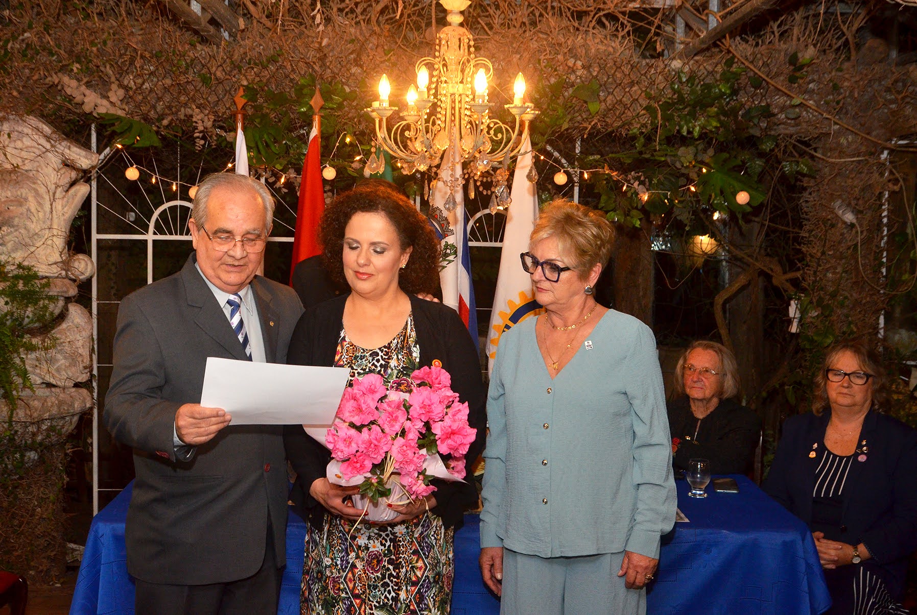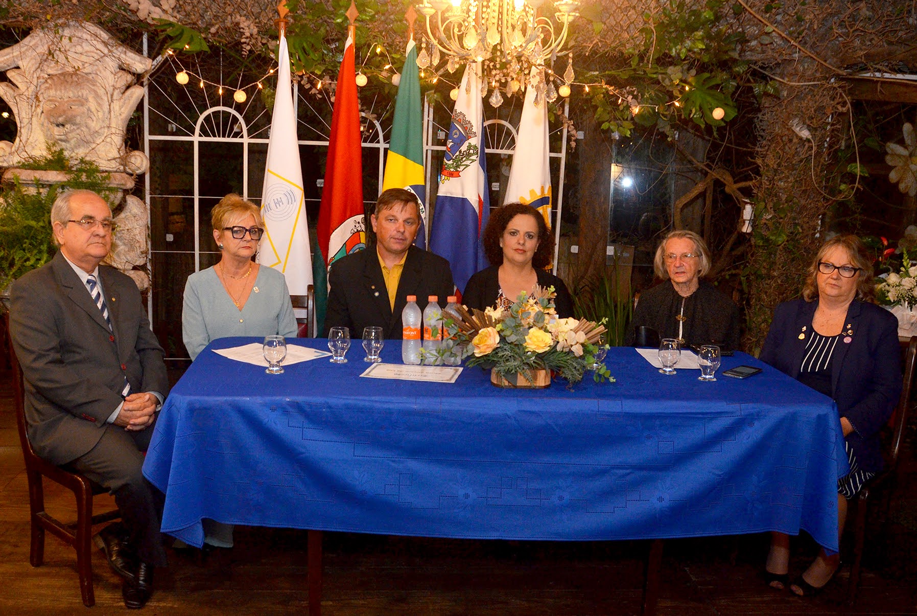A presidente Valéria Leitzke, juntamente com as companheiras recepcionaram os convidados: Presidente do Rotary Club Pandiá Cardoso e esposa, e demais companheiros do clube, representantes de Entidades de nossa comunidade.
