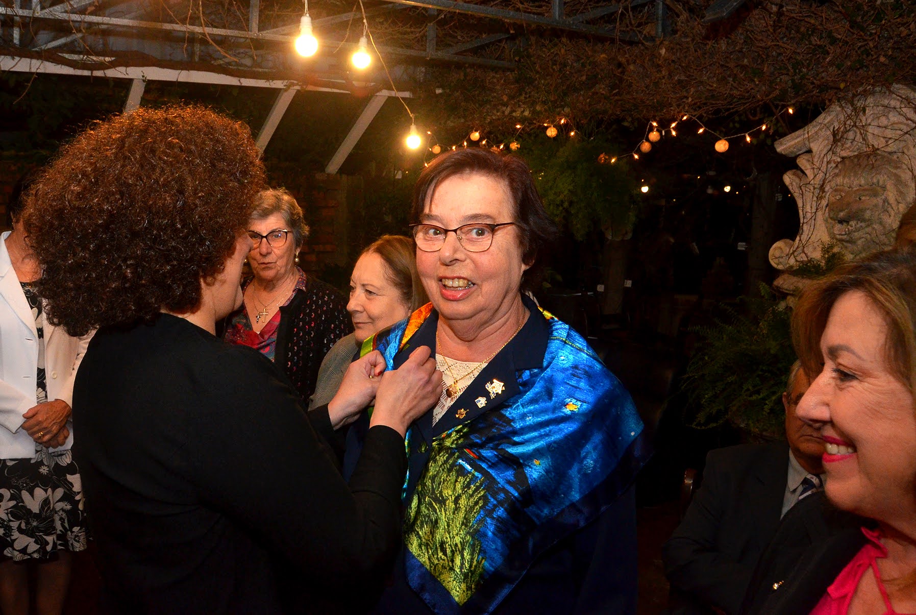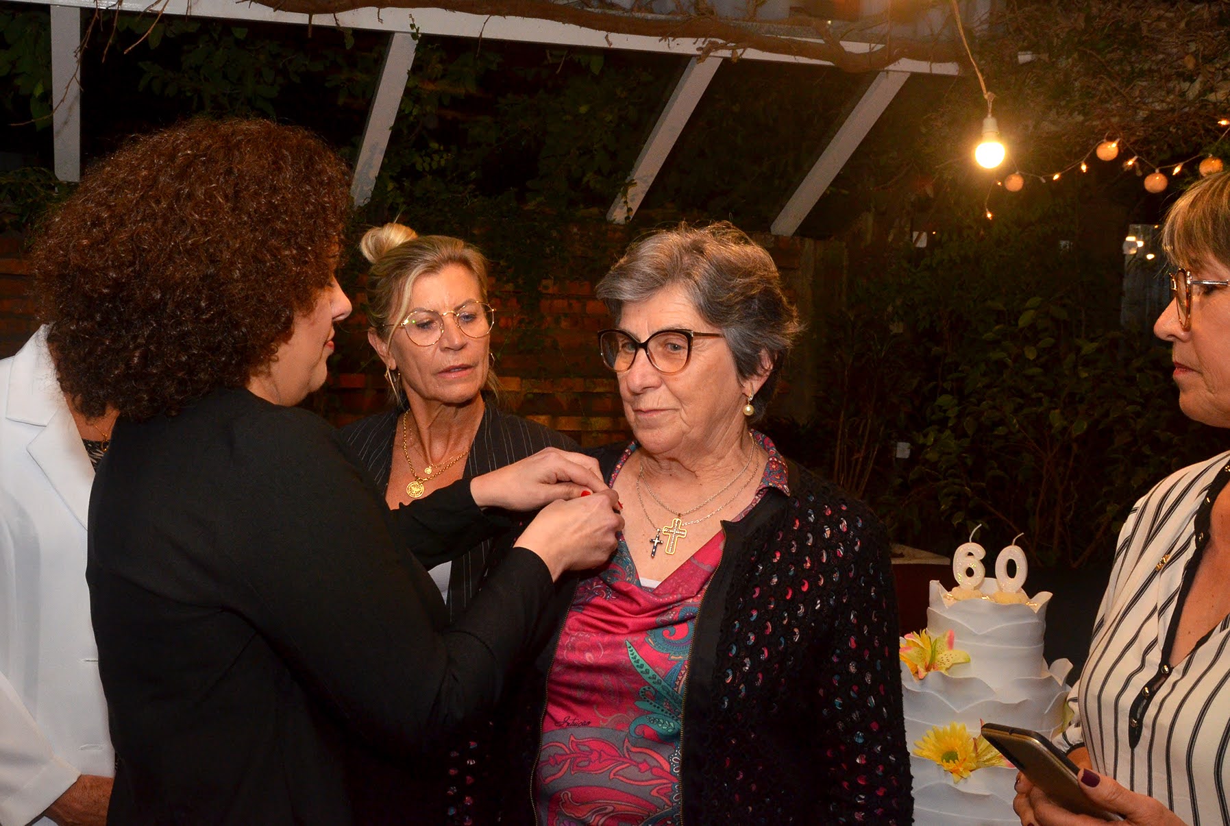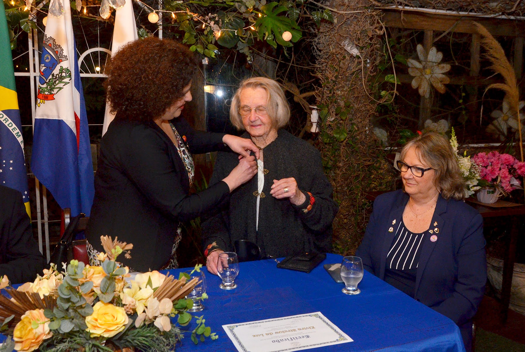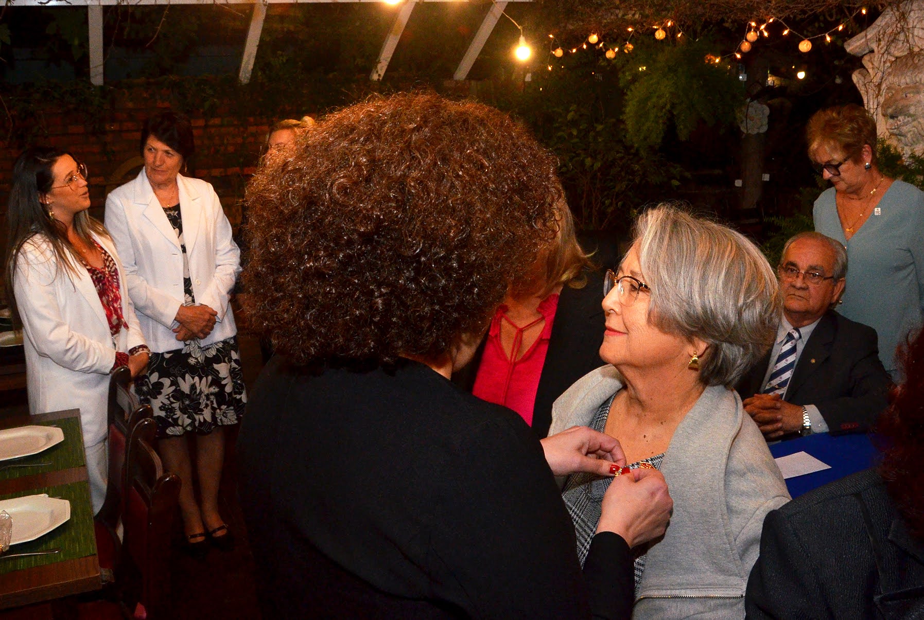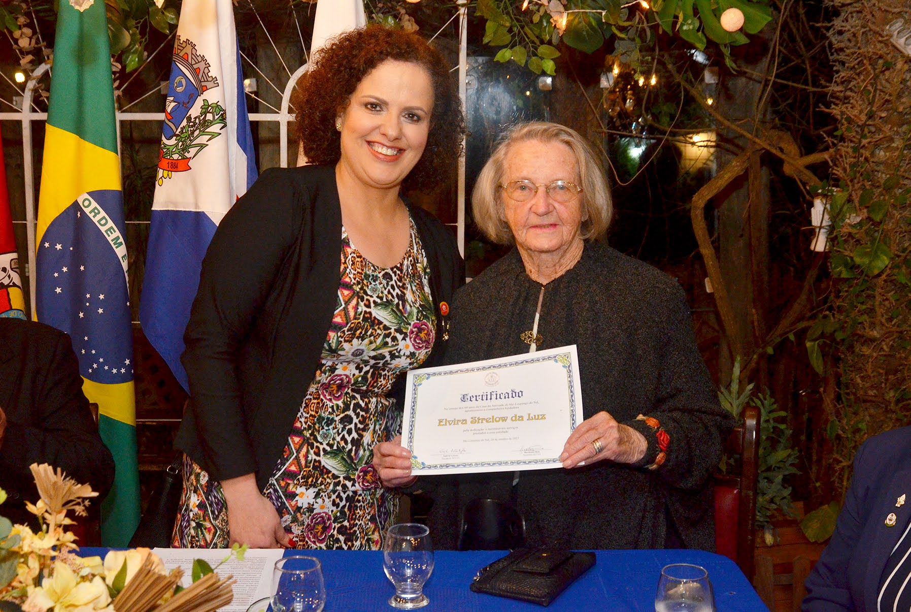 A noite teve como destaque especial homenagem à companheira Elvira da Luz, 1° presidente que recebeu certificado em reconhecimento pelos anos de dedicação à Entidade, e também a companheira Eci, 1° Secretária receberá a homenagem posteriormente.