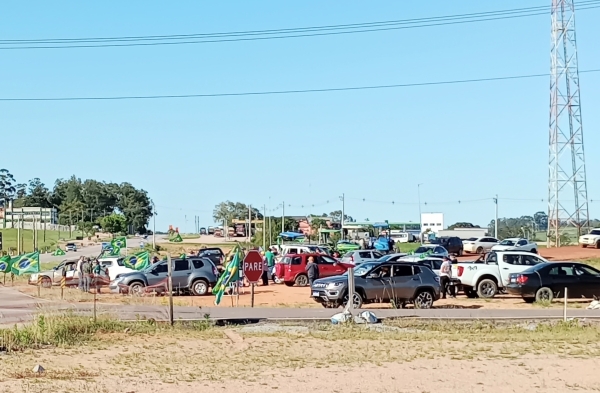 Uma manifestação que iniciou na tarde de ontem, terça-feira (01), em apoio ao Presidente Jair Bolsonaro, caminhoneiros e outros apoiadores e segue neste feriado no trevo de acesso à São Lourenço do Sul.