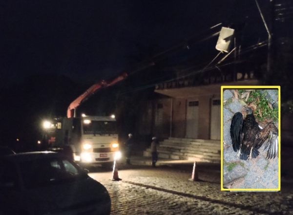 Na tarde desta terça-feira um urubu atingiu a rede elétrica na rua Pinheiro Machado em frente ao Correio. Com o choque, a rede elétrica desde aquela rua até a rua Barão do Triunfo em direção ao arroio ficou sem luz. Uma equipe da Ceee Equatorial está realizando a manutenção e a energia elétrica deve voltar em breve