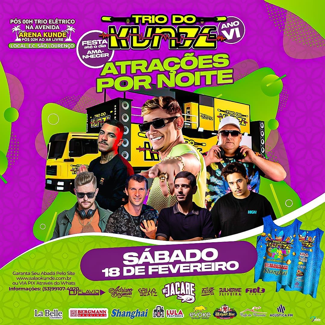 Se liga na programação das 3 noites de Trio do Kunde e para participar de uma ou mais noites você só precisa do nosso Abadá.