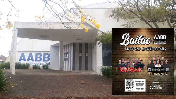 Reabre neste sábado (4) o salão de festas da AABB com Bailão com atrações da BANDA SULBRASS e BANDA DESTAQUE NACIONAL Os arrendatários Dênis Peglow e Sidnei Hall reformaram o prédio e regularizaram PPCI, intalação de hidrantes e caixas dágua, reformulando um novo projeto.
