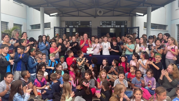 A Equipe Diretiva juntamente com os alunos, professores, funcionários e estagiários cantaram parabéns a Escola, comemorando e confraternizando com muita alegria esta data tão especial.