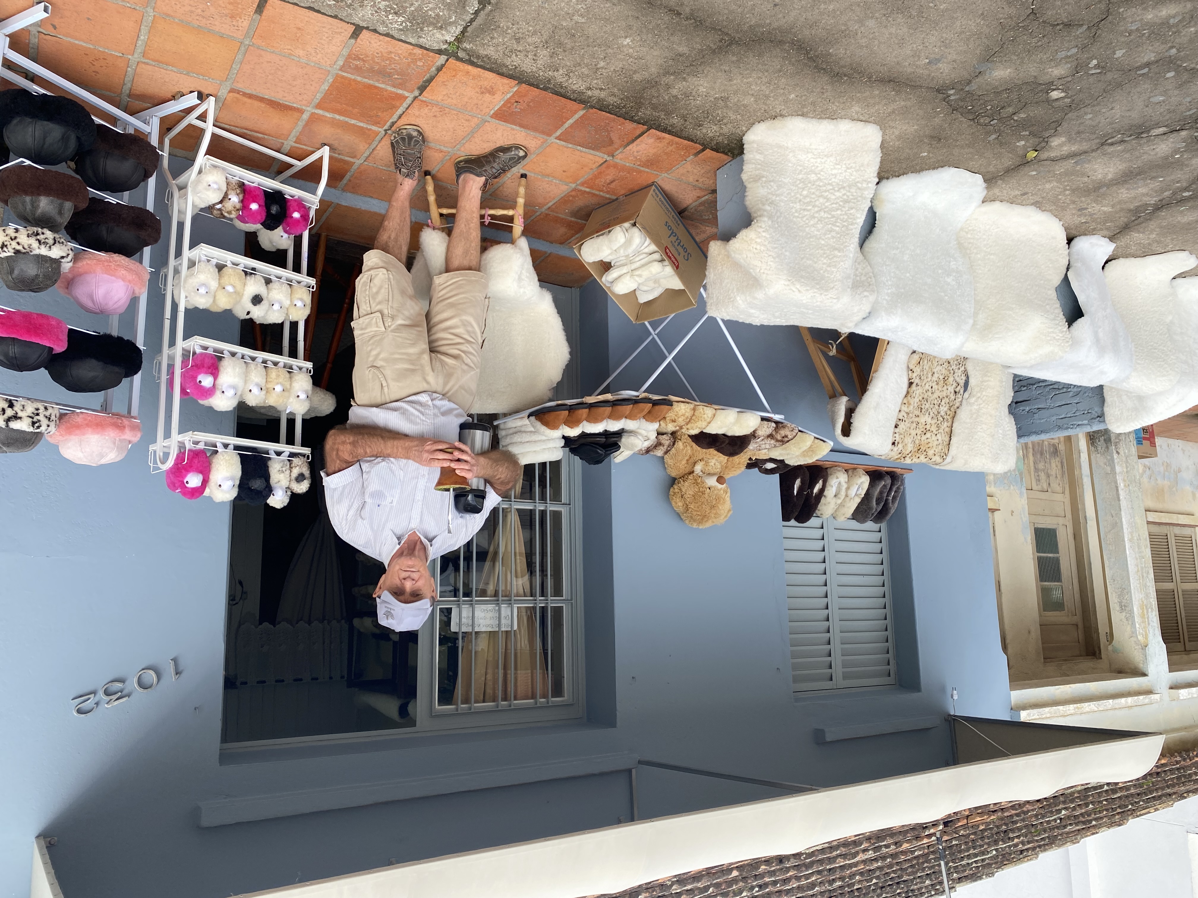 Depois, tudo que fabricamos é levado para as feiras de artesanato para vender na Av. Bento Gonçalves, em Pelotas, aos domingos. Estamos há quase 35 anos ali em frente ao Lobão. Fazemos toda a produção manual. Não usamos máquina. Os clientes geralmente são das redondezas aqui do Sul. De fora somente no verão, quando vem os turistas de praia. Na época de inverno é mais o pessoal do local. Em Pelotas já temos a clientela. Estamos há muitos anos naquele espaço. Então as pessoas que compraram num inverno, normalmente compram no outro também.