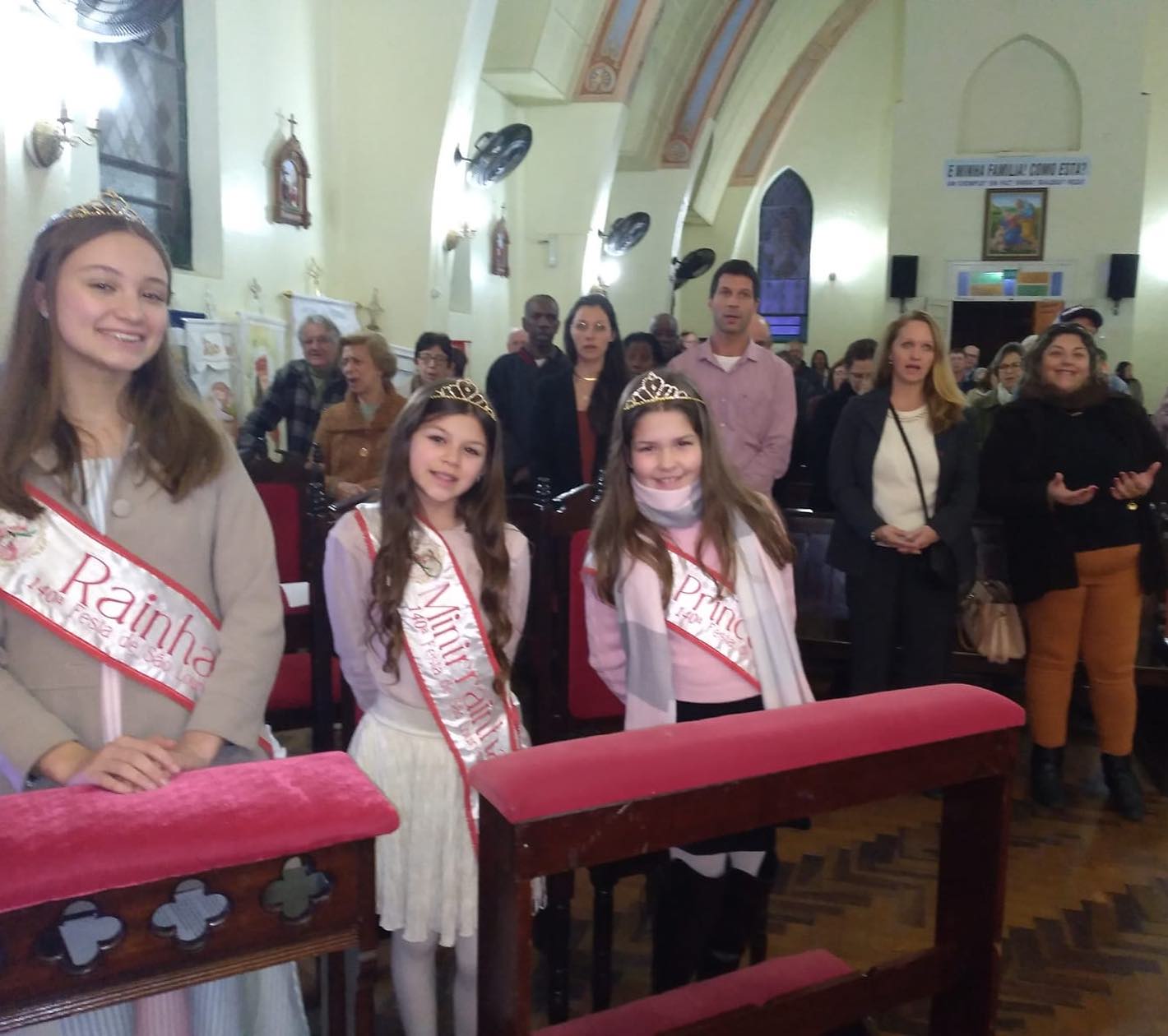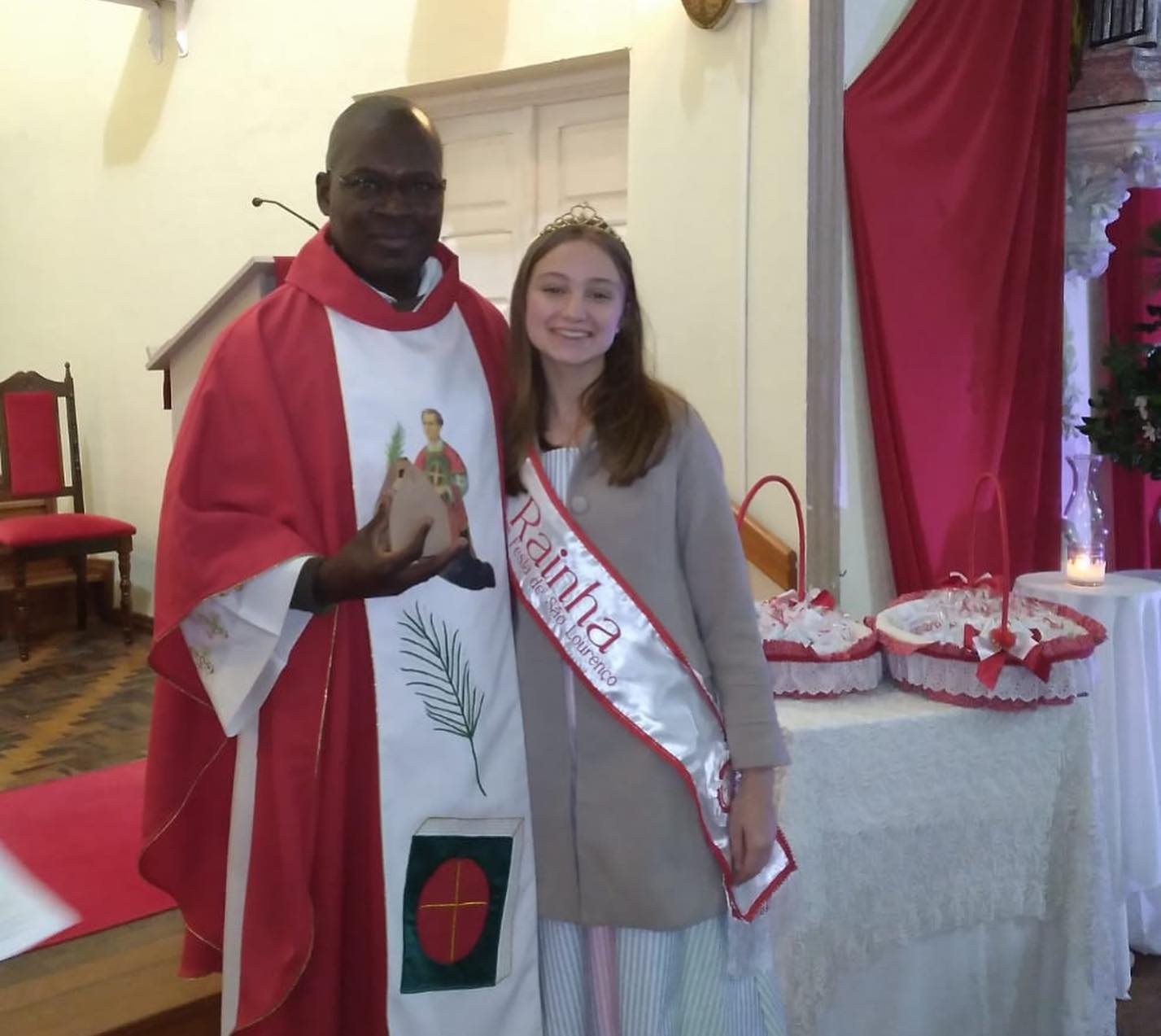 AÇÃO SOLIDÁRIA - Durante a novena, a comunidade está recebendo doações de alimentos, os quais serão destinados às famílias carentes de nossa cidade: Dia 2 - Feijão, Dia 3 - Óleo, Dia 4 - Açucar; Dia 5 - Massa; Dia 6 - Farinha; Dia 7 - Leite; Dia 8 - Novelo de Lã; Dia 10 - Material de Limpeza. FESTEIROS: Maurício Serpa e Roberta Fernandes da Silva; André dos Santos e Waleska Silva Serpa. RAINHA: Ana Laura Iepsen Ferreira. MINIRRAINHA: Laila do Amaral Ely. PRINCESA: Anna Cristina dos Santos Gonçalves. Os Padres, Festeiros e a Coordenação da Paróquia agradecem pela sua participação.