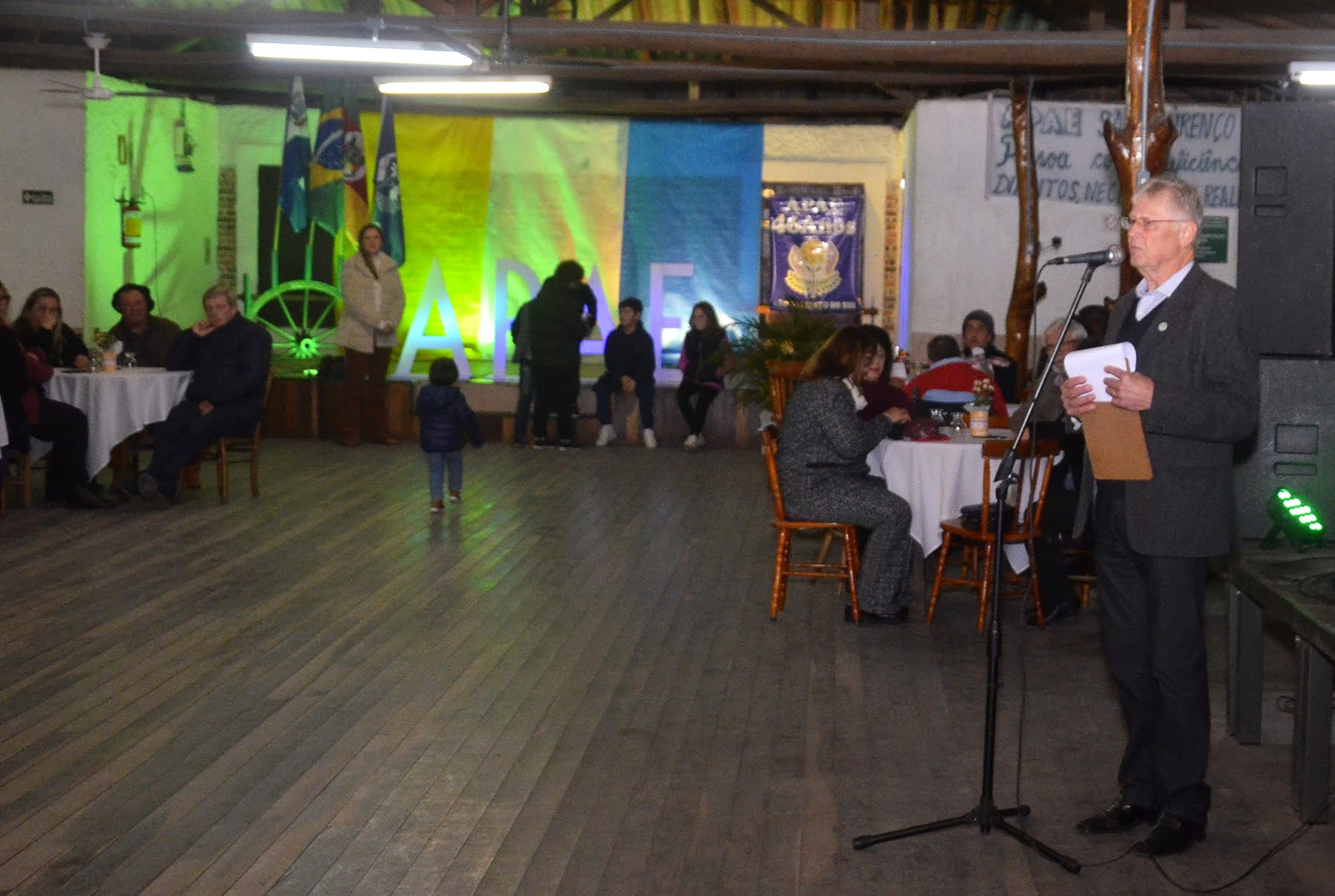 Na noite deste sábado a APAE São Lourenço comemorou seus 46 anos com uma linda festa no CTG Sepé Tiaraju contando com a presença de muitas pessoas e autoridades do município. A animação foi de Robledo Martins, Gilnei Ferreira e Pedro Corrêa. Desejamos vida longa a esta instituição tão importante para nossa sociedade e parabenizamos todos que fazem parte de suas ações e trabalhos.