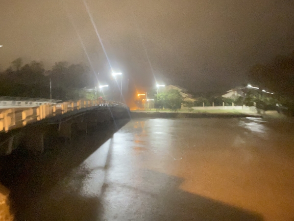 Nível do Arroio está mais alto e apesar de ter saído do leito nas imediações do Iate Clube, nas zonas próximas ao centro e Lomba a água não saiu em nenhum local. Telefone da Defesa Civil (53) 99100-0645