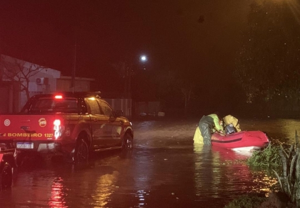 ?os Bombeiros e a Defesa Civil continuam em ação nos arredores do arroio resgatando a população que está em situação de risco.