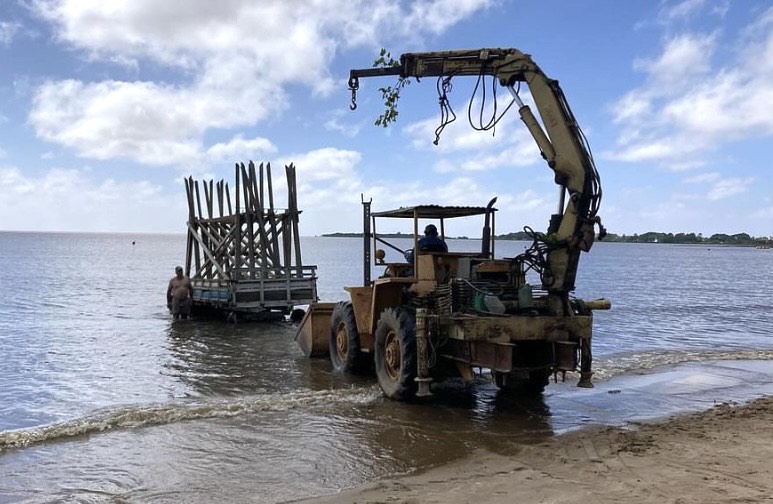 Uma das perguntas mais frequentes é: terá show de fogos? E a resposta é: sim! Serão 8 minutos de show pirotécnico no céu da Praia da Barrinha. A montagem da plataforma onde será realizado o show pirotécnico foi feita na manhã de hoje. • E atenção, neste ano, em virtude da não execução do Horário Brasileiro de Verão o Show Pirotécnico será as 00h!