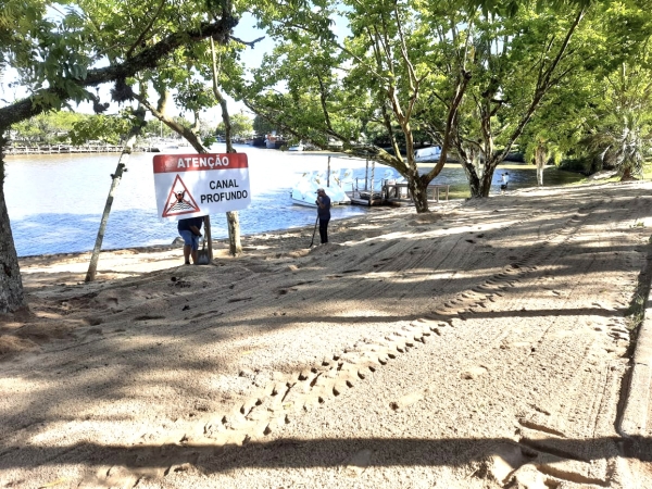 Neste primeiro momento, a areia está sendo realocada na orla do Arroio São