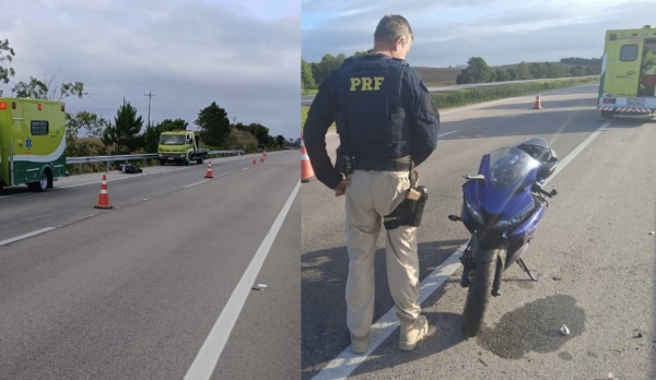 Na manhã desta segunda feira aconteceu uma queda de motocicleta no km 473 da BR-116, em São Lourenço do Sul no sentido Norte (Camaquã).