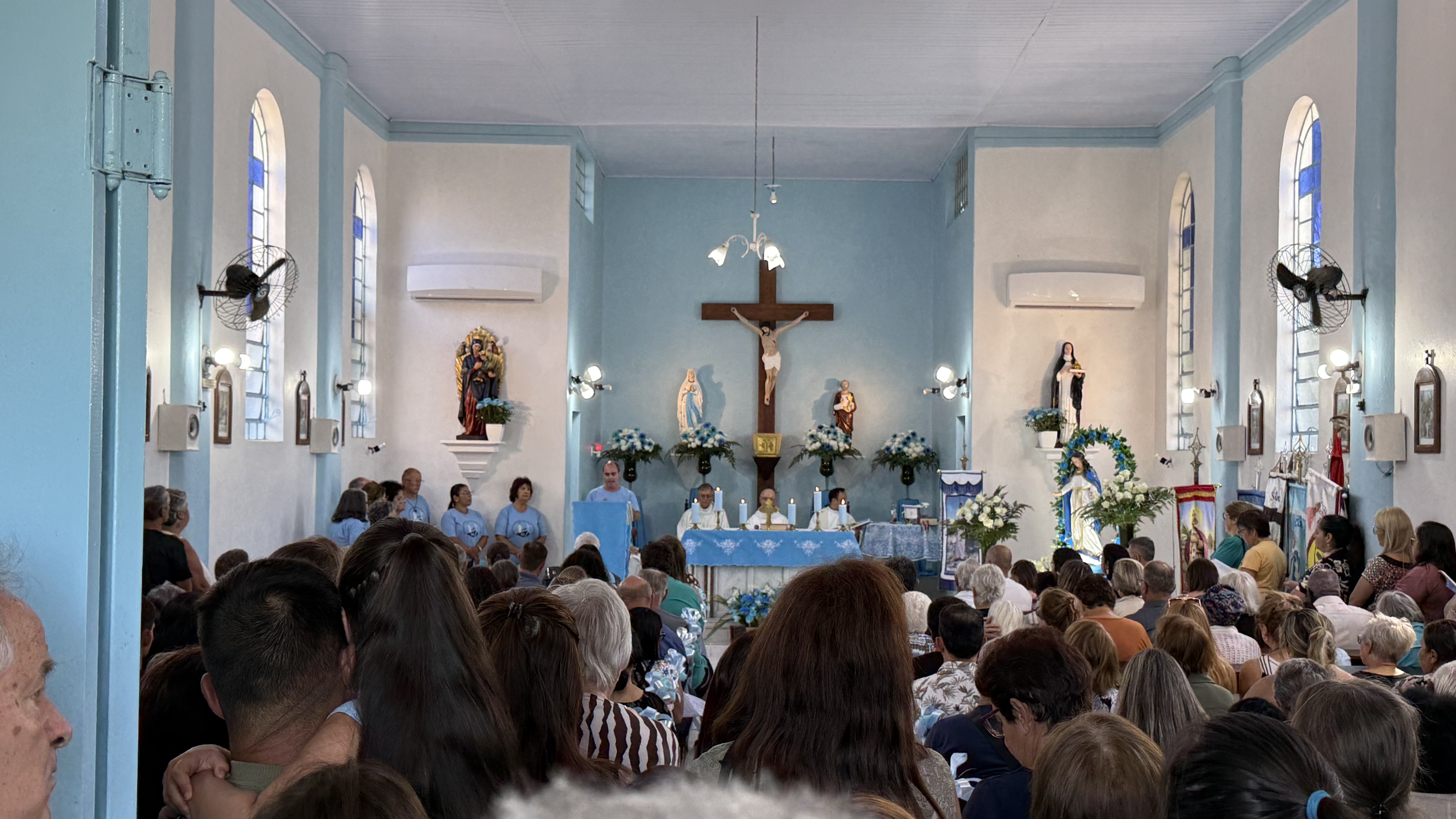Após a Missa festiva, fiés sairam em procissão terreste, fluvial e lacustre.