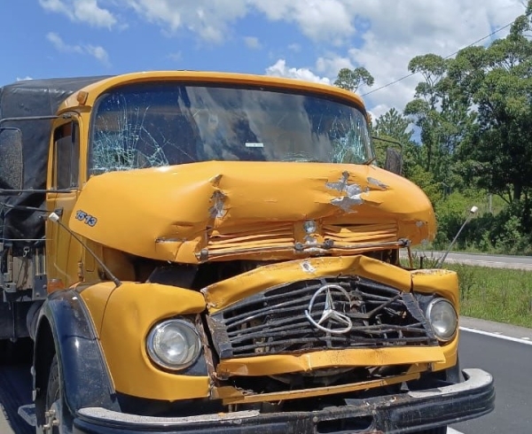 Na manhã desta terça-feira aconteceu um acidente no km 459 da BR-116, em São Lourenço do Sul, sentido norte (Camaquã). Informações preliminares indicam uma colisão traseira entre dois veículos de carga. O fluxo está fluindo em meia pista. Equipes da Ecovias no local. Sem vítimas, apenas danos materiais.