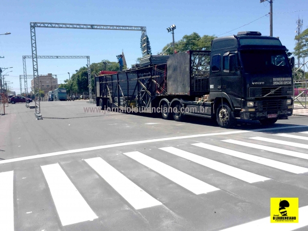 Equipes já trabalham na montagem da passarela para as quatro noites de folia em São Lourenço do Sul. Estruturas de decoração, som, iluminação, arquibancadas e palco, por exemplo, estão sendo instaladas na avenida Marechal Floriano Peixoto, Centro da cidade.