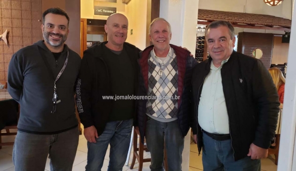 Nesta semana estiveram reunidos no Restaurante Tropicális o Secretário de Turismo Junior Braga, o empresário Domingos, que é proprietário dos barcos Piratas (Balneário Camboriú), Oscar Hoffsttater (Nena) proprietário das escunas em São Lourenço e o advogado Valdir, também de Santa Catarina. O objetivo da reunião foi a troca de idéias e experiências entre os empresários, buscando trazer novidades e aprimorar os serviços no turismo de verão também em São Lourenço do Sul.