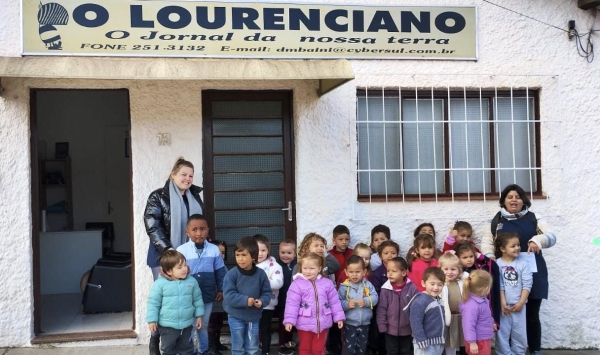 Na terça feira, dia 05 de setembro, as turmas do Maternal 1 da professora Patrícia Coimbra e a turma do Maternal 2 acompanhados da professora Tatiane Azevedo, visitaram a sede do Jornal O Lourenciano a fim de conhecer o local de meio de comunicação e informação para a comunidade Lourenciana, fundado pelo Sr. Davi Baini que está sendo homenageado durante a Semana da Pátria. A EMEI Raio de Sol agradece pela recepção e por oportunizar este momento de aprendizagem aos nossos educandos.