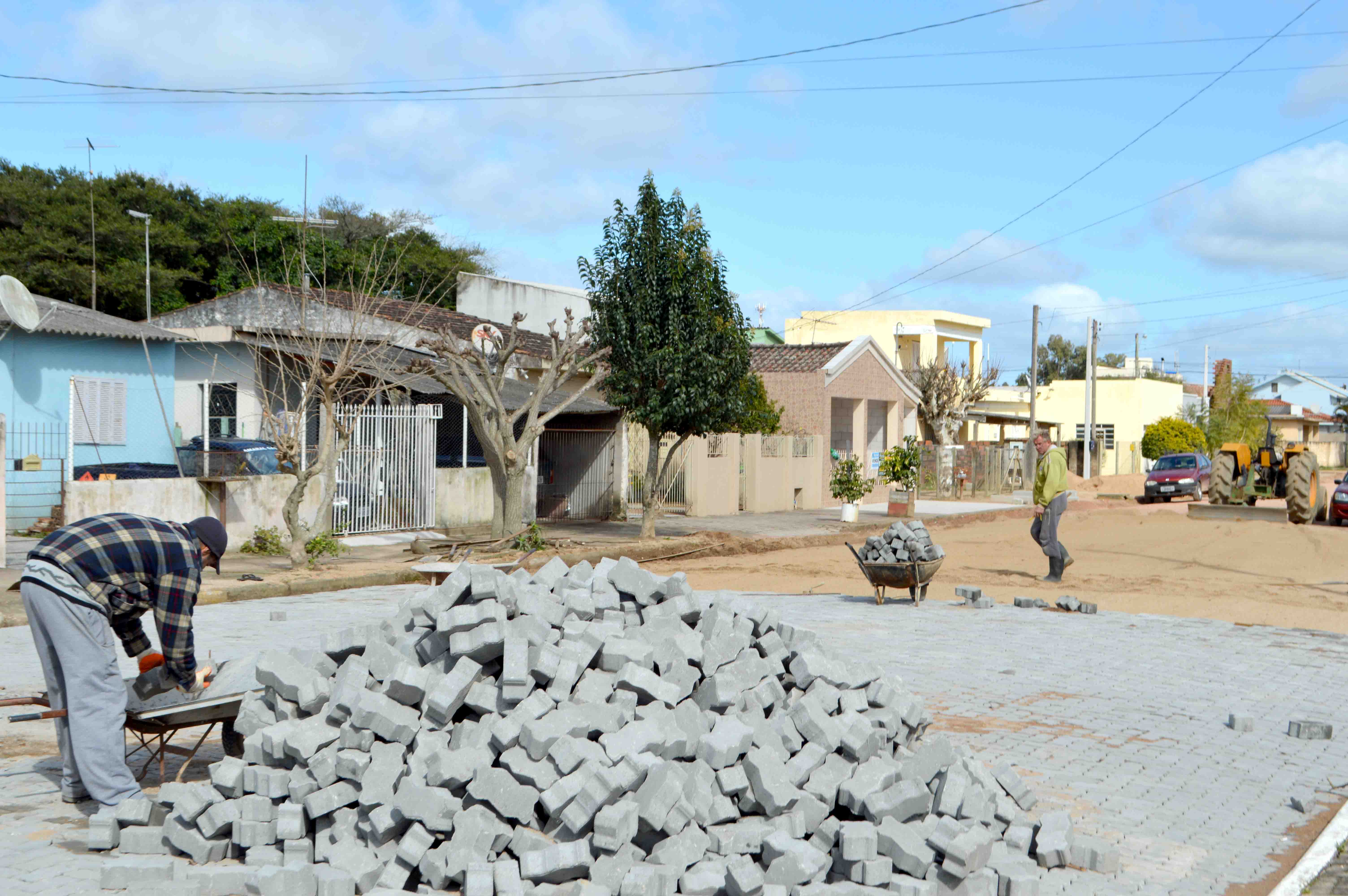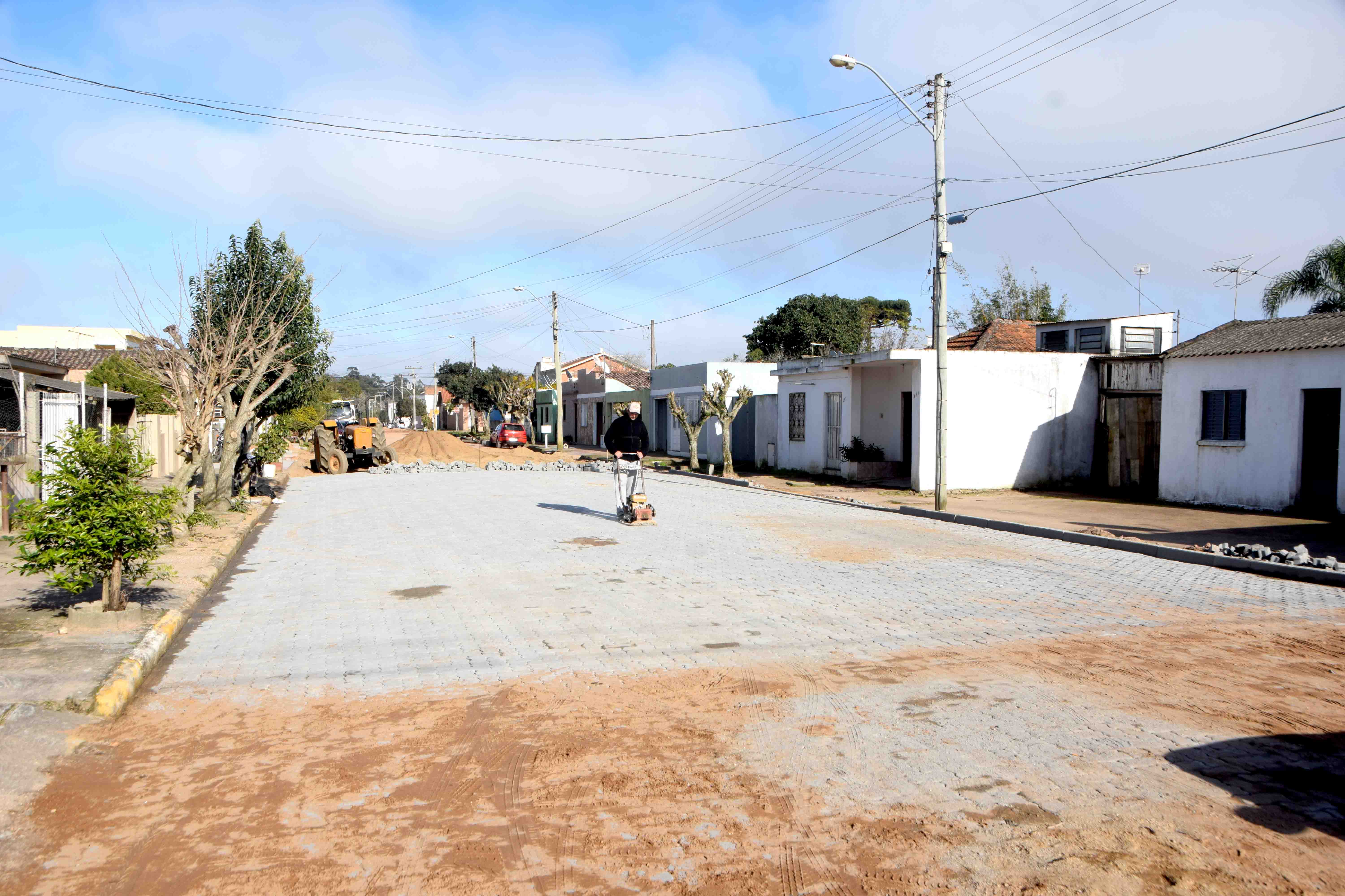 A Prefeitura Municipal está realizando mais uma obra de pavimentação com blocos de concreto na rua Sete de Setembro entre as ruas Isolina Passos e Princesa Isabel, no bairro Navegantes. A pavimentação da via é feita através do Programa de Pavimentação Comunitária quando a obra é realizada em conjunto pelos moradores e Poder Público.