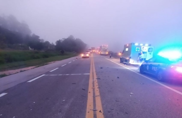 Ao menos cinco pessoas ficaram feridas após uma colisão lateral envolvendo um ônibus intermunicipal e um caminhão, na madrugada deste sábado (11), na BR-116, em Cristal. O acidente foi registrado por volta das 5h30, no quilômetro 426 da rodovia.