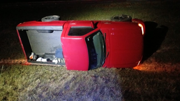 Uma caminhonete Ford Ranger Vermelha perdeu o controle e saiu de pista às 5h29 deste sábado no km 438 da BR-116, próximo ao Corredor dos Kraft em Cristal.