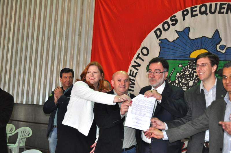 Na foto em primeiro plano, da esquerda para a direita, Srª Laíse Gorziza de Souza - Prefeita de Encruzilhada do Sul, Srº Amilton Strelow Diretor Geral da Coopar, SrºPatrus Ananias - Ministro do MDA, SrºClauto Lisboa Melo Junior - Superintendente da Conab RS.