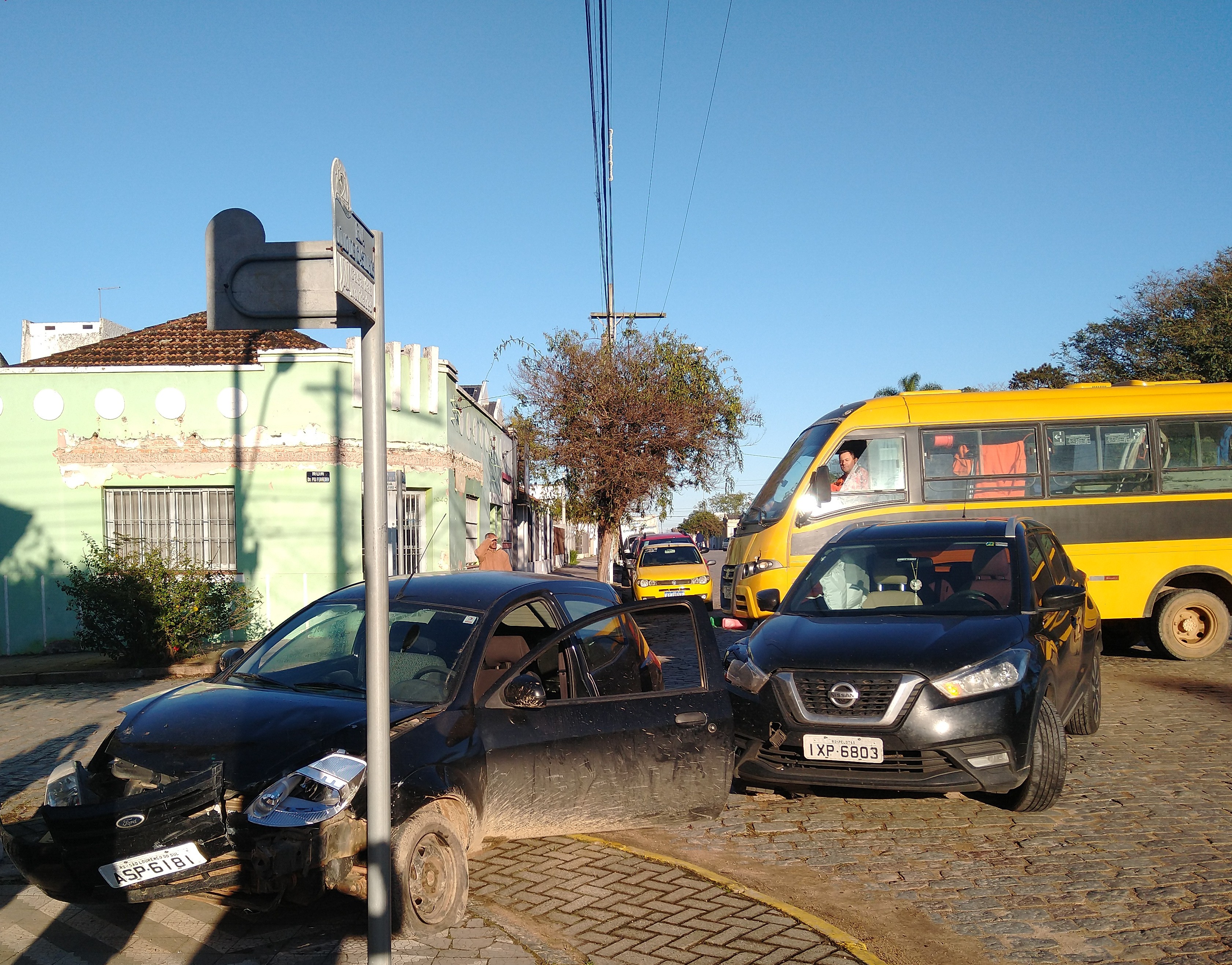 Na manhã deste quarta-feira aconteceu a colisão entre dois veículos na esquina das ruas Júlio de Castilhos e Pio Ferreira. Segundo informações colhidas no local um Nissan Kicks teria invadido a preferencial colidindo em um Ford Ka. Do acidente resultou apenas lesões leves na motorista do Ka. Brigada Militar e Samu atenderam a ocorrência.