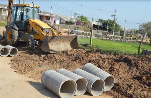 Equipe da Secretaria de Obras e Urbanismo iniciou nesta sexta-feira (07) a instalação de nova rede de encanamentos na rua Alfredo Bergmann, que faz a ligação da Lomba com a avenida Moliano Crespo. A instalação dos canos é necessária para, em seguida, dar sequência a pavimentação total da rua.
