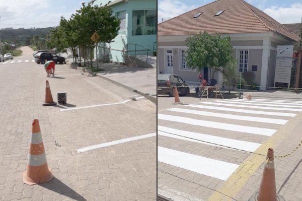 Uma equipe da Secretaria de Obras e Urbanismo trabalhou nesta semana em nova sinalização de trânsito horizontal e vertical em frente ao Centro de Saúde São João da Reserva, na zona rural.