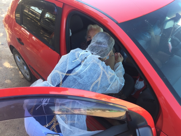 A vacina é feita dentro do carro mesmo, mas quem chegar a pé, é claro, também será imunizado. É preciso levar Cartão SUS, Carteira de Vacinação (se tiver), CPF, Carteira de Identidade e comprovante de residência. Nesta mesma faixa etária, os acamados podem entrar em contato com a UBS de seu bairro para agendar a vacina em casa.