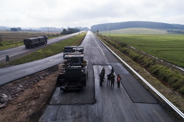 Em 2019, o 1º Batalhão Ferroviário assumiu o serviço nos lotes 1 e 2 (cerca de 50 quilômetros entre Guaíba e Tapes), que até então eram de responsabilidade da construtora Constran. A empresa entrou em recuperação judicial e teve o vínculo rescindido com o Departamento Nacional de Infraestrutura de Transportes (Dnit) em dezembro de 2018. Desde então, o grupamento militar finalizou dois trechos: o primeiro deles em abril de 2020, com a liberação de cinco quilômetros, e o segundo, em dezembro passado, com a inauguração de outros 10,5 quilômetros. Na tarde desta quarta-feira, será inaugurado um terceiro trecho, entre os quilômetros 330 e 340 da rodovia, com a presença do comandante do Exército, general Paulo Sérgio Nogueira de Oliveira, que terá extensa agenda no Estado — incluindo visitas, inaugurações e inspeção da área cogitada como sede da futura Escola de Sargentos (ESA) em Santa Maria, na Região Central.
