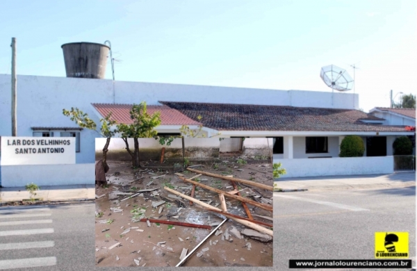 Com os ventos fortes e chuvas do final de semana, o Lar dos idosos Santo Antônio teve seu telhado danificado na parte dos fundos da casa, causando um grande prejuízo nos quartos da casa. Segundo informações com Diretoria do Lar dos idosos, a Defesa Civil auxiliou no que foi possível para amenizar os estragos no local, que permanece com lona temporária para que possa ser organizada a reforma do que foi danificado.