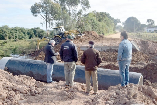 Na manhã desta sexta-feira (3), a Prefeitura Municipal de São Lourenço do Sul através do prefeito, Rudinei Härter, vice-prefeito, Cléo Uarthe, secretário de desenvolvimento rural, Moisés Araújo, e engenheiro, Fabricio Gehling, acompanharam de perto mais uma etapa da reconstrução da ‘Ponte dos Härter’, a qual está na fase final, na Estrada Camponesa.