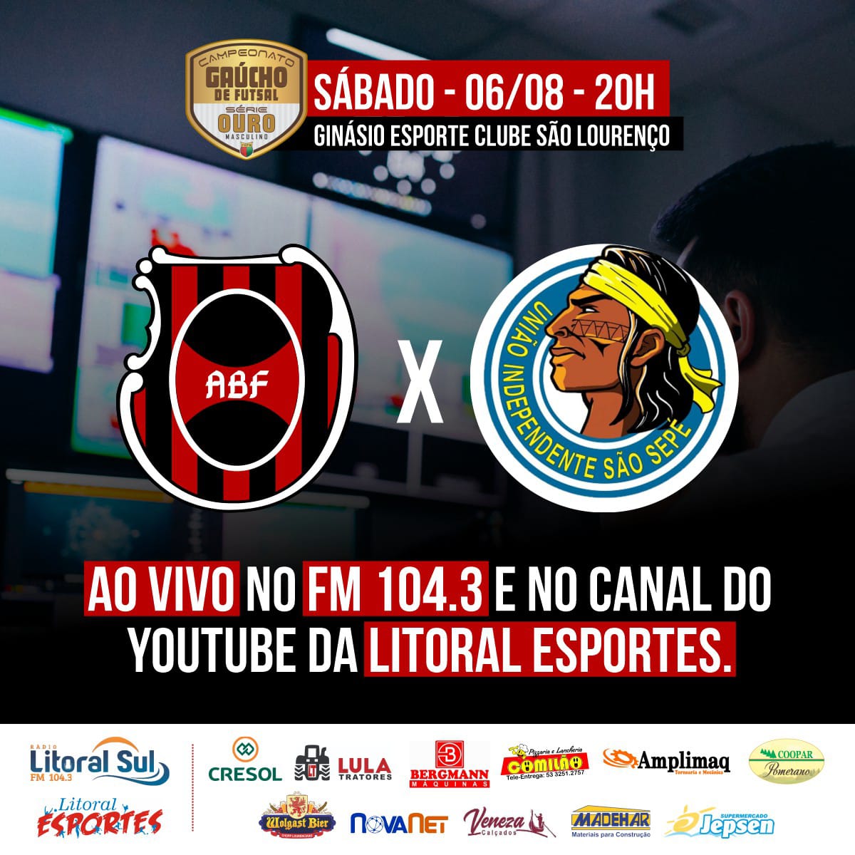 Sábado (06) é dia de Campeonato Gaúcho de Futsal – Série Ouro em São Lourenço do Sul. A ABF Futsal recebe no Ginásio do Esporte Clube São Lourenço, o União Independente de São Sepé pelo Estadual, o jogo está marcado para as 20h, ingressos para a partida custam R$ 10,00.