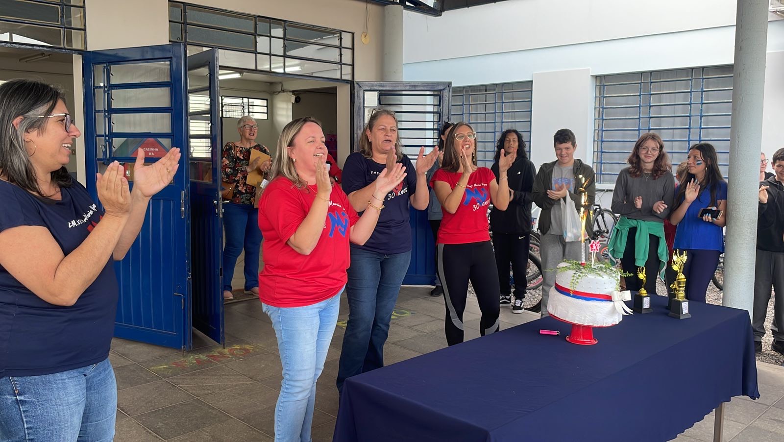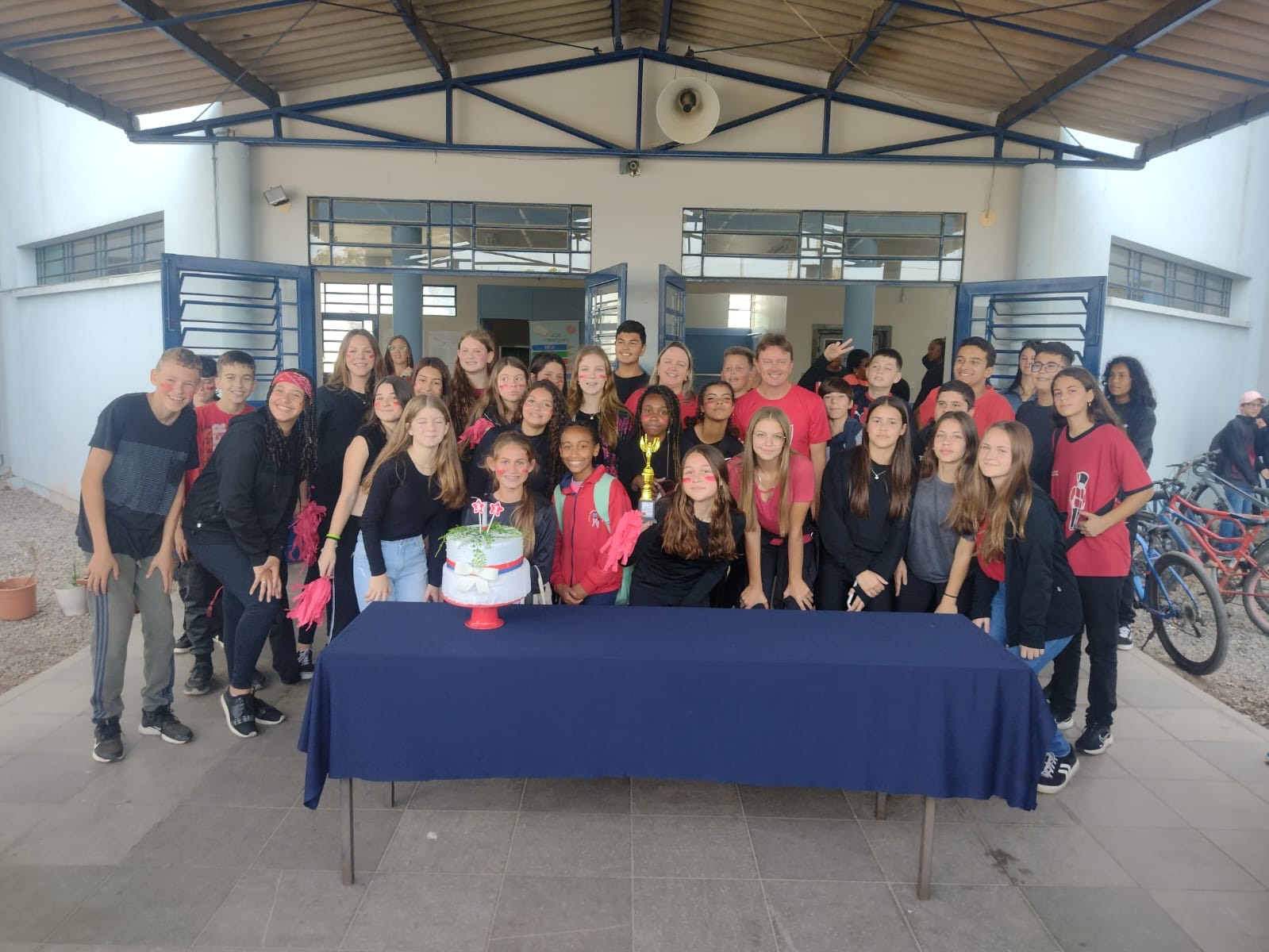 A Equipe Diretiva juntamente com os alunos, professores, funcionários e estagiários cantaram parabéns a Escola, comemorando e confraternizando com muita alegria esta data tão especial.
