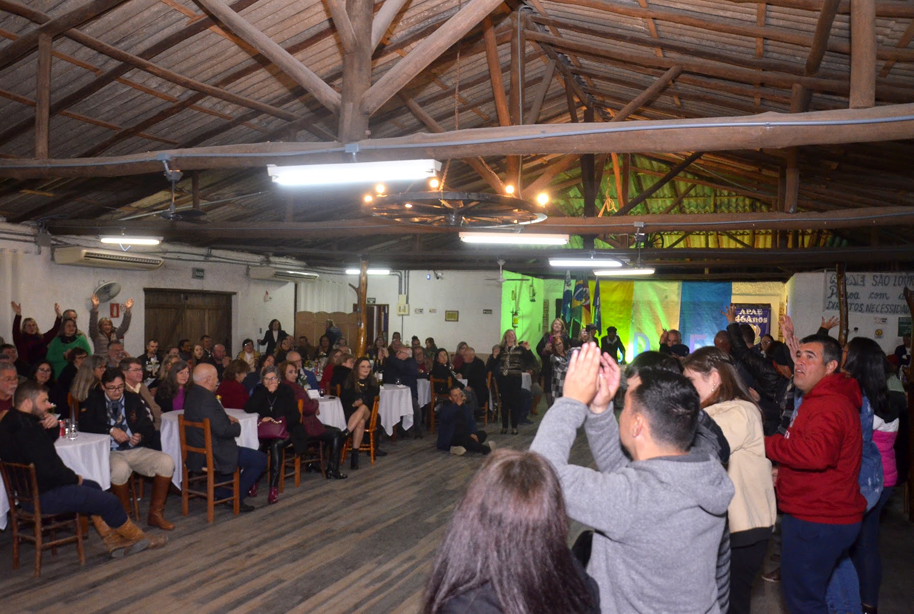 Na noite deste sábado a APAE São Lourenço comemorou seus 46 anos com uma linda festa no CTG Sepé Tiaraju contando com a presença de muitas pessoas e autoridades do município. A animação foi de Robledo Martins, Gilnei Ferreira e Pedro Corrêa. Desejamos vida longa a esta instituição tão importante para nossa sociedade e parabenizamos todos que fazem parte de suas ações e trabalhos.